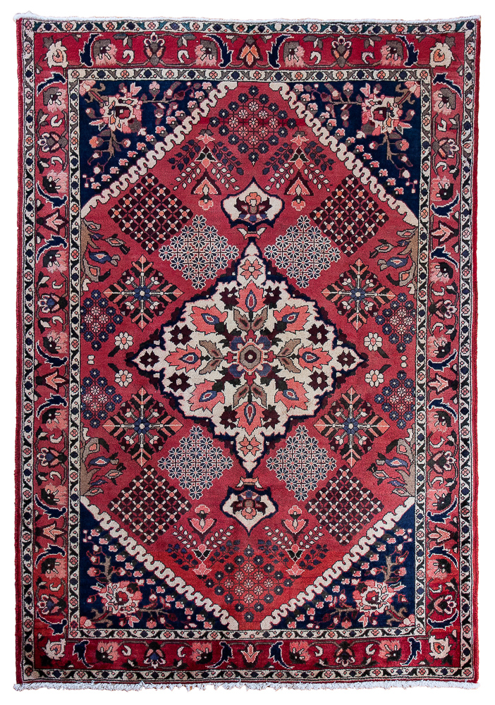 Os motivos mais utilizados são florais. O  Khesti, um reconhecido padrão semelhante a um jardim, é talvez um dos mais conhecidos e usados nos tapetes Bakthyiar. Os tons que predominam são os vermelhos, os castanhos e o marfim. O azul é raramente usado.